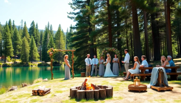 Imagine saying “I do” surrounded by towering pines, with the scent of campfire smoke wafting through the air and the laughter of friends echoing in